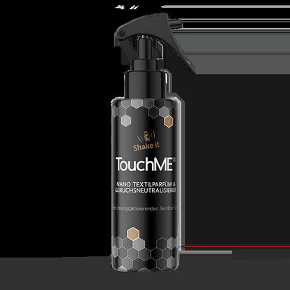 TouchME geurverwijderaar en textielverfrisser hygiënespray verwijdert hardnekkige geuren en binnengelaten geurtjes en laat een aanrakingsactieve geurbeleving achter op bijvoorbeeld: textiel, bank, meubelbekleding, kleding, schoenen, tapijten, wasgoed. De luchtverfrisser is ook te gebruiken als dierengeurspray voor hardnekkige dierengeuren.